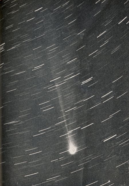 Hodinová expozice astronoma a také objevitele komet M. Comas Sola z observatoře Fabra ve španělské Barceloně ukazuje detailně vzhled komety Finsler se dvěma chvosty 7. srpna 1937.